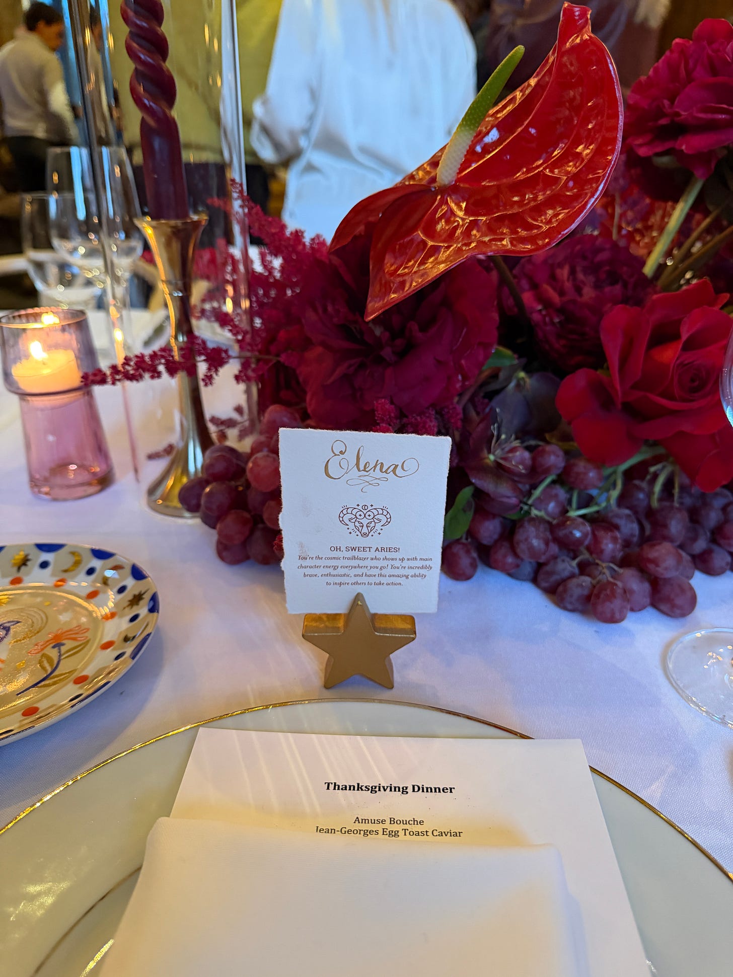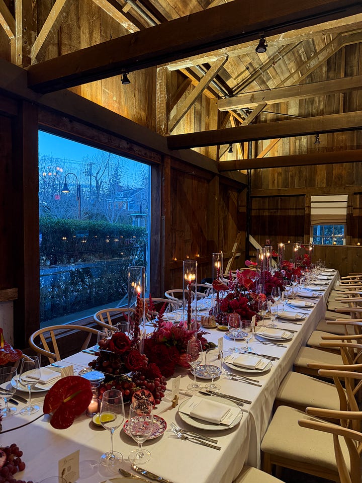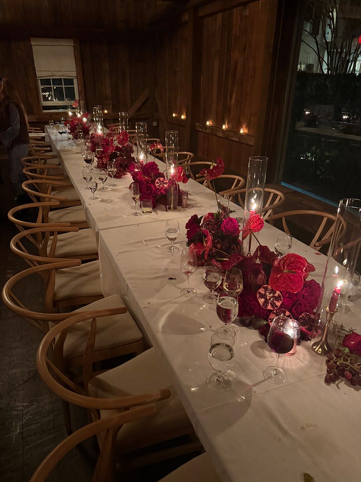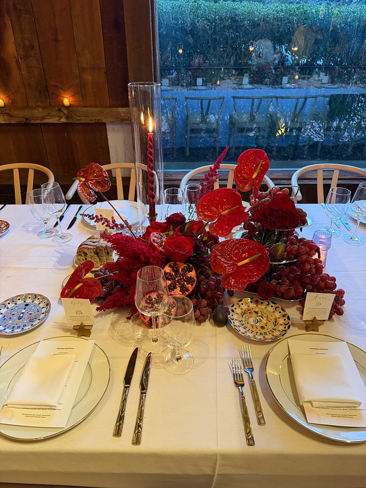 Hope everyone is having a wonderful Thanksgiving weekend. I am in East Hampton with Xander’s family this year. For the past three years his family has been having Thanksgiving dinner at Toppings Rose House. The food is Jean-Georges, so you know it is going to hit every time. Xander’s aunt and uncle hosted us and she absolutely crushed it with the tablescape. I called it a while ago, but grapes are having such a moment on tables this fall. Obsessed with the red and burgundy notes. Never mad about a tablescape you can eat. I like to call it “edible decor”… the best kind of decor ;)