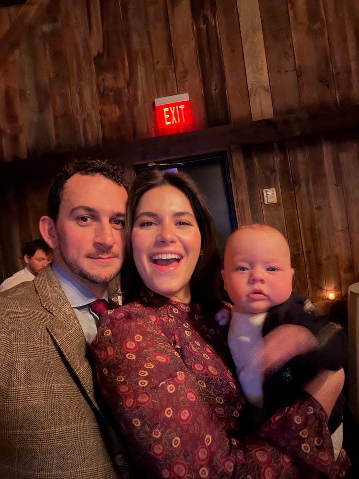 Speaking of cute, the cutest part of the entire night was spending time with baby Emmett (the first baby boy in the next gen). Xander’s cousin Max and his wife Katharine are new parents. They live in California, so seeing them was such a treat. He’s only four months old and he’s already so cute. Can’t get enough of that little smush.